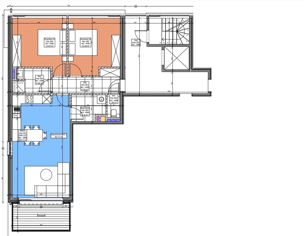 Superficie totale : 84 m²