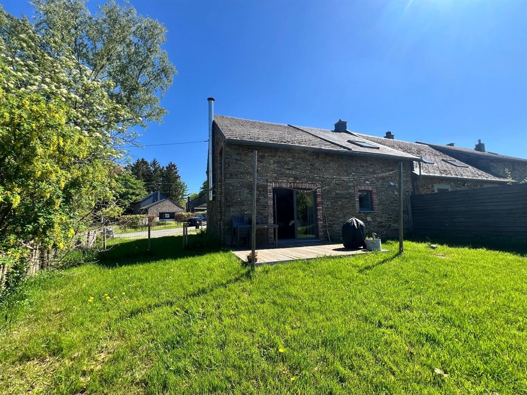 VENDU!! A la recherche d'une opportunité d'investissement ou simplement vivre dans une maison cosy? MCA Immobilier vous propose cette charmante maison rénovée avec des matériaux naturels et de qualité située à Harre dans la commune de Manhay à proximité de l'E25 reliant Liège-Luxembourg. Cette propriété s'étend sur un terrain de +/- 850m² (sous réserve de division). Elle se compose comme suit; au rez-de-chaussée, un hall d'entrée mène à une cuisine équipée ouverte sur le séjour, un salon, une toilette et une buanderie. Le premier étage se compose de 3 chambres (+ a chambre pour bébé), un salle de bain avec baignoire et douche Italienne, une toilette indépendante. A l'extérieur, vous pourrez profiter d'un beau jardin offrant une vue dégagée depuis la terrasse. Actuellement utilisée en tant que gîte 6 personnes avec un bon rendement locatif. Ne manquez pas l'occasion de découvrir ce bien! 📩 Contactez-nous dès maintenant pour plus d’informations ou pour organiser une visite : info@immomca.be | ☎ 086/32.36.76