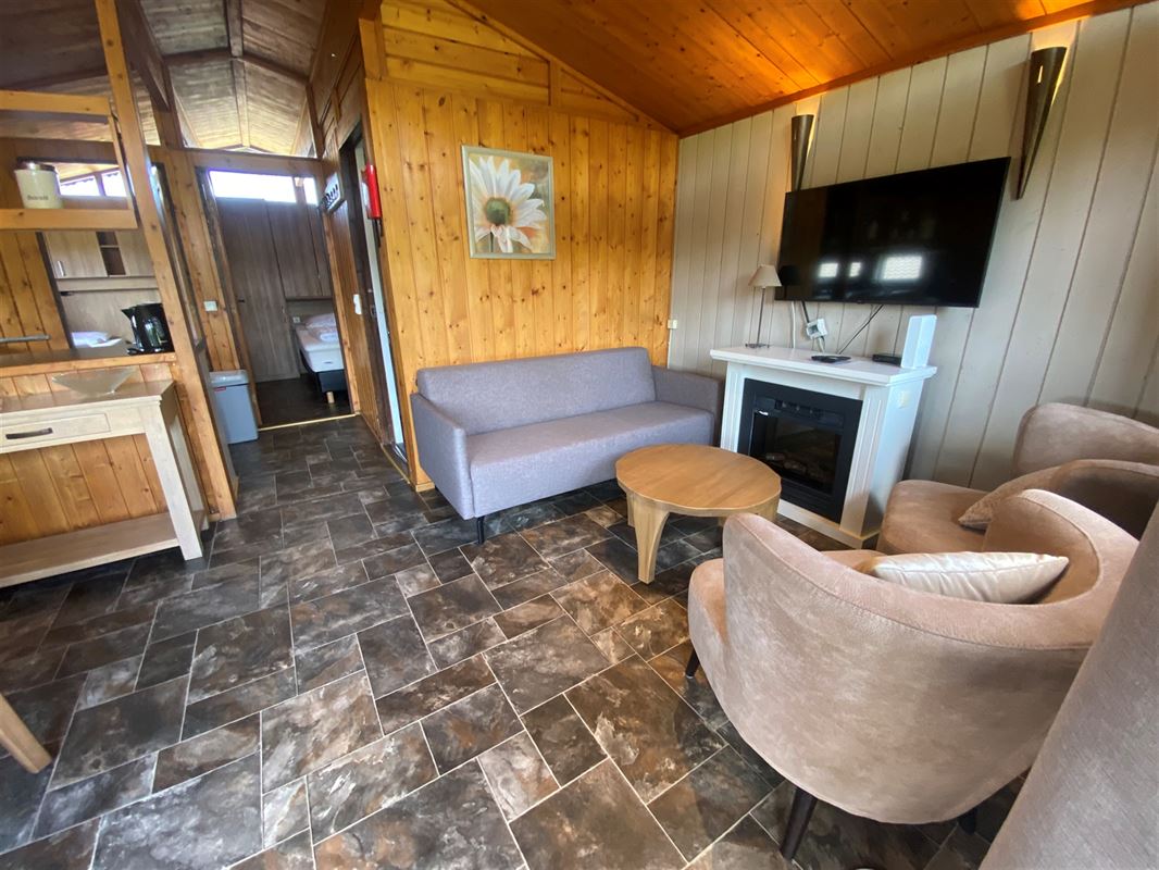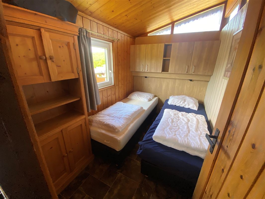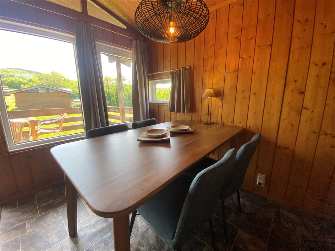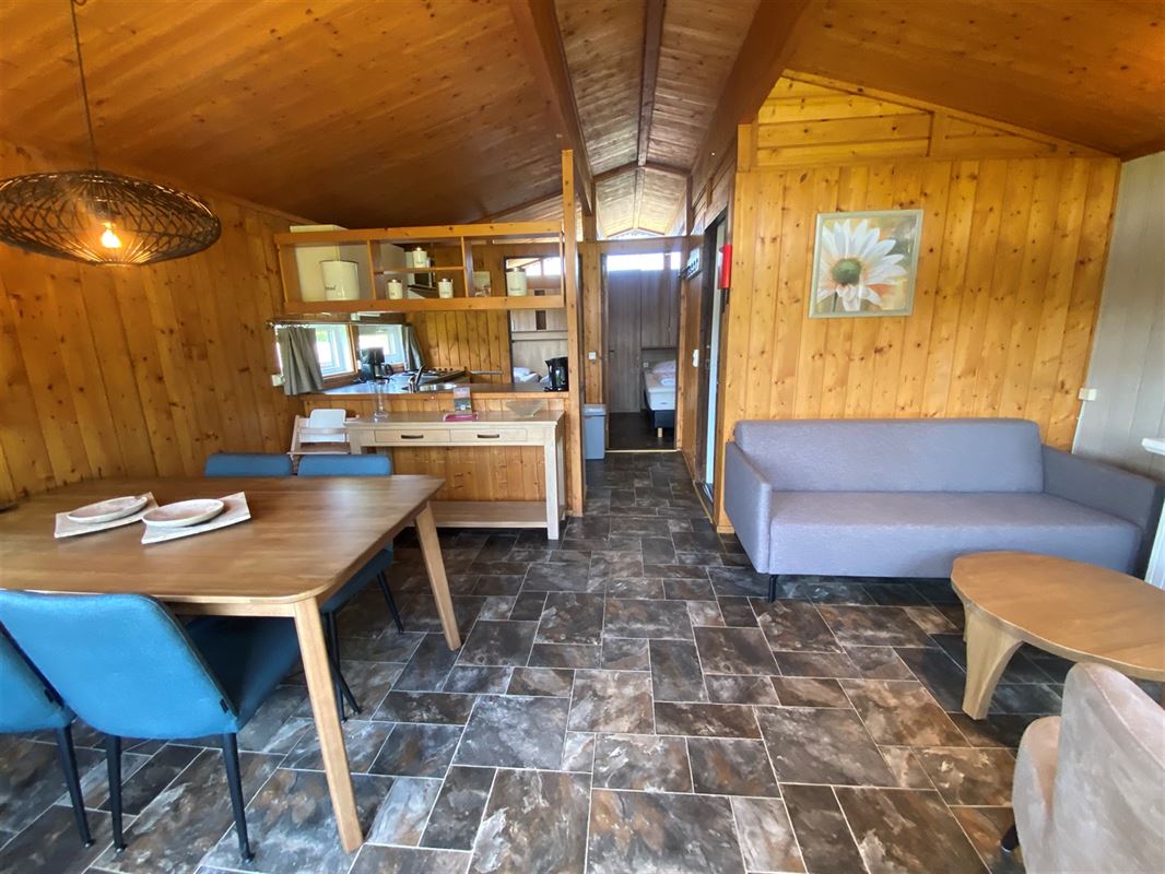 MCA Immobilier vous propose ce chalet numéro 113 situé dans le parc de vacances Vallée les Etoiles. Ce chalet est prévu pour accueillir 4 personnes. Il se compose d'un beau séjour lumineux avec salon avec cheminée électrique, salle à manger et cuisine semi-ouverte. Ensuite vous trouverez 2 chambres et une salle de douche. A l'extérieur vous profiterez d'un terrasse offrant de superbes vues sur la Vallée de la Meuse. Attention, il s'agit d'un parc de vacances, il n'est donc pas autorisé de s'y domicilier. Vendu entièrement meublé (neuf 2025). Frais du parc: environ 4.000€ /an. Infos & Visites: 086/32.36.76 - info@immomca.be