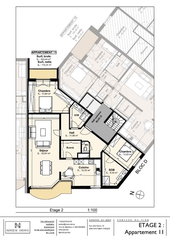Superficie totale : 115 m²