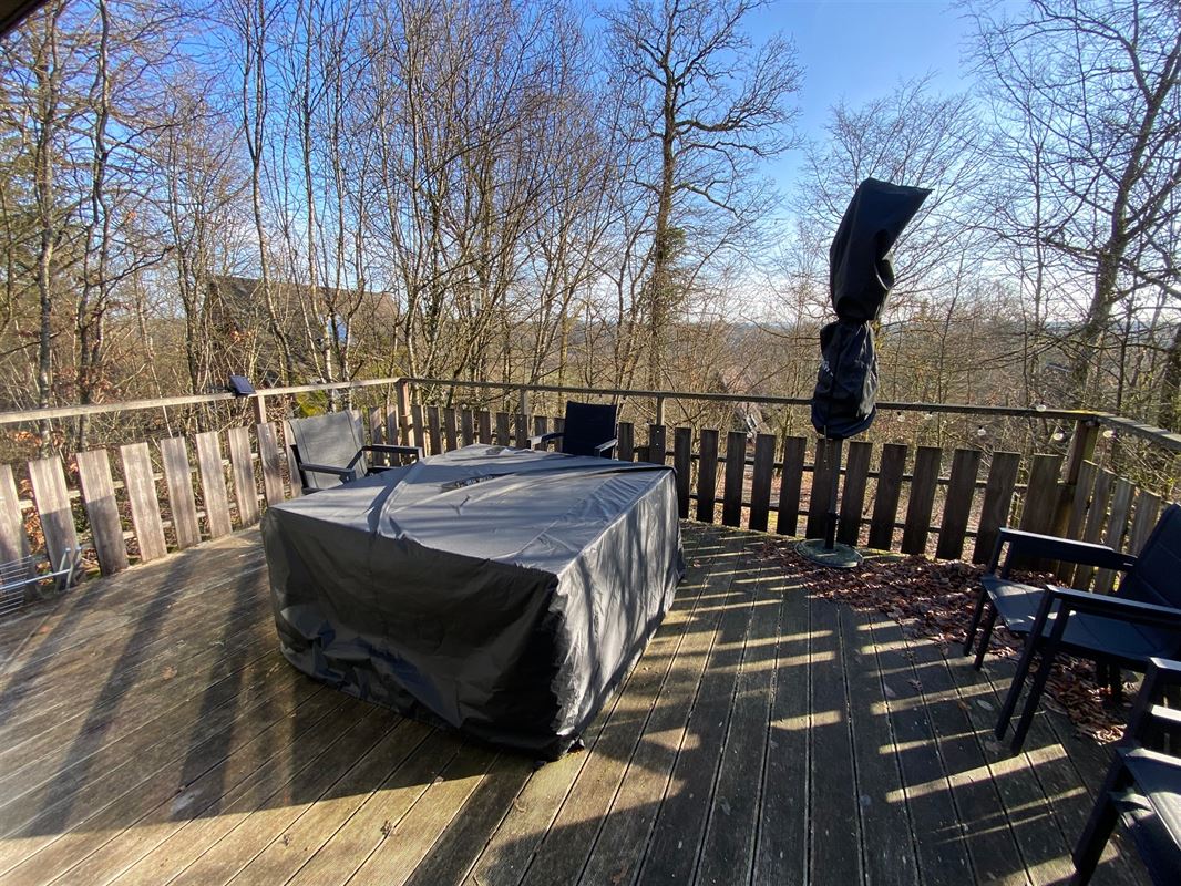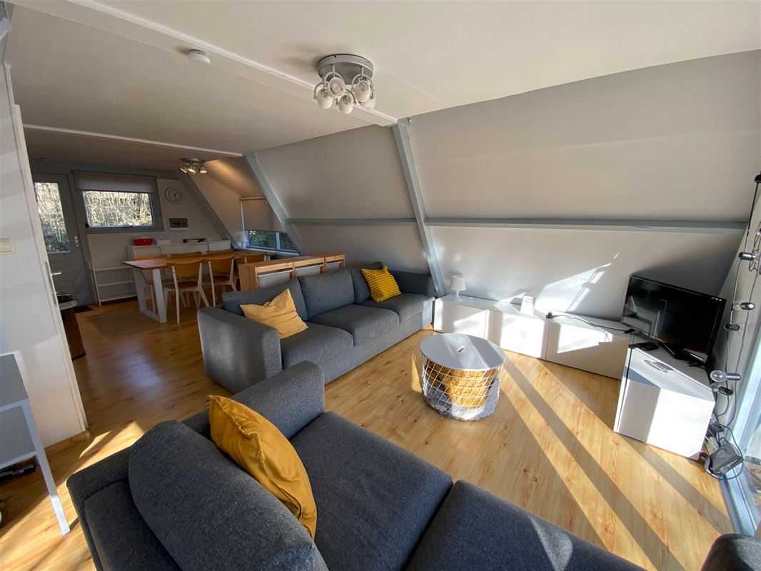 In het vakantiepark SUNCLASS Durbuy biedt MCA Immobilier u bungalow nr. 38, mooi gelegen, bosrijke omgeving. De chalet is als volgt ingedeeld: op de begane grond vindt u een grote, lichte en aangenaam ingerichte open woonkamer, bestaande uit een zitkamer, eetkamer en nieuwe open keuken. Er is ook een doucheruimte met toilet. Boven zijn er 2 slaapkamers en een extra slaapruimte met plaats voor 5 personen. Er is ook en grooti terras op zuiden. Gemakkelijk parkeren recht voor de bungalow. Ideaal als tweedeverblijf en tergelijk een investering. Als u vragen hebt over de parktarieven, kunt u een e-mail sturen naar info@immomca.be. Pas op, als dit in een vakantiepark ligt is geen domicilie mogelijk is.